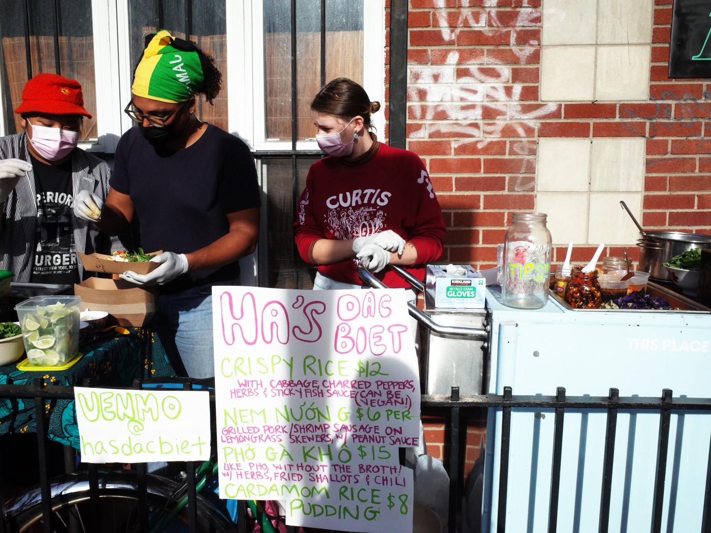 To celebrate the launch of the new This Place Studio website (this one you're looking at right now), we decided to throw a party. We opened a temporary gallery on a sunny fall weekend in Brooklyn featuring zero-waste floral and lighting installations and Vietnamese snacks on the sidewalk. Taking place during the Covid-19 pandemic in New York, the party had strict CDC guidelines in place to ensure guest safety and social responsibility.