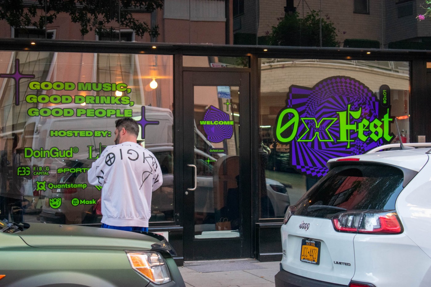 During NFT Week in New York City, DoinGud celebrated the launch of their new platform with OXFEST, a cocktail party in a private gallery in Manhattan, exhibiting various digital artworks for guests to view.